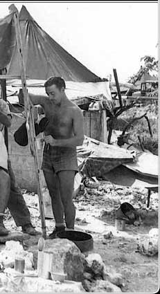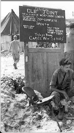 Even before the battle for Peleliu was over, life was becoming more normal for troops behind the lines. This barber shop offered a haircut, shoeshine and cup of coffee for just 50 cents.