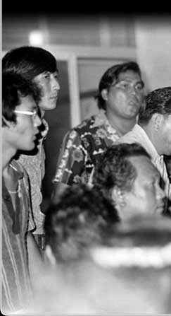 Bitterness over the political status issue was growing in the Northern Marianas. At this protest staged by leaders in 1971, a man holds a copy of the TT Code that he is about to burn.