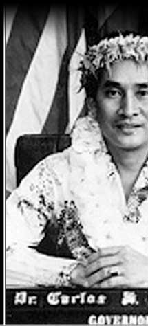 The new Commonwealth government was in place by 1978. Carlos Camacho, the first elected governor of the Northern Marianas, is shown here shortly after taking office.