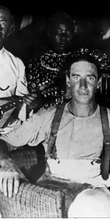 The arrival of a trading schooner meant the company of other whites. The evening was often filled with drink and song, as it was for this gathering in the Marshalls. These visits brought variety to the lives of islanders as well.