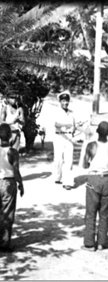 Could the men in this circle also have been playing kickball? These men on Saipan about 1905 are certainly engaged in a game, whatever it might have been. It would not have been introduced by the Germans, though. They were too busy getting coconut trees planted to bother with sports and games.