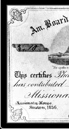 The church needed its own ship if it expected to make regular visits to the scattered islands in the region. Appealing to American children for their nickels and dimes to buy a new ship, the mission finally raised the $12,000 needed. This is the certificate each donor received.