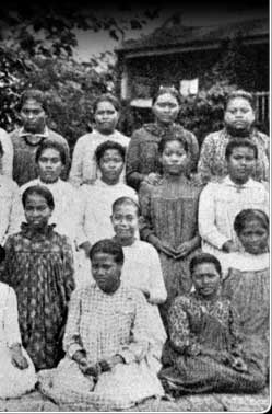 Here are the girls who would become the wives of the local pastors and teachers. These girls attended the Kosrae Girls School during the 1880s, when higher education was first extended to females.