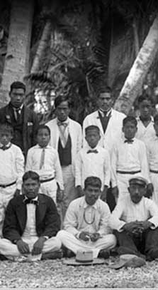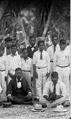 These young men are members of a church group on Ebon. They gathered in 1907 to celebrate the 50th anniversary of the founding of the church on Ebon.