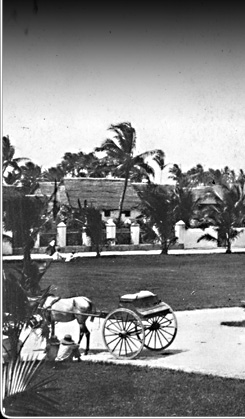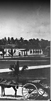 This is the plaza from another angle, showing the houses that served as quarters for US naval officers. Horse-drawn buggies brought military personnel and civilians to other parts of town.