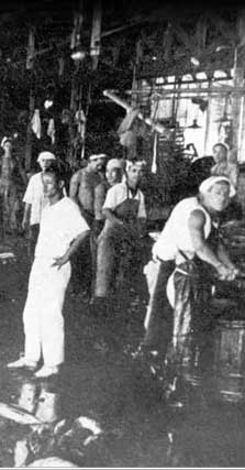 This factory in Palau was built in 1934 to process katsuobushi, as the industry spread to other islands. Saipan had a similar factory, and another was planned for Pohnpei. By the late 1930s katsuobushi exports were bringing in more than 5 million yen a year.