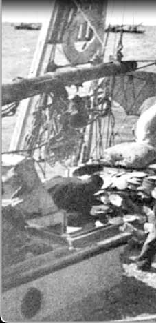 Bonito was not the only marine product exported. This boat is being loaded to do pearl fishing in the waters south of Palau. From the mid-1930s, Koror hosted hundreds of pearl divers during their time off.