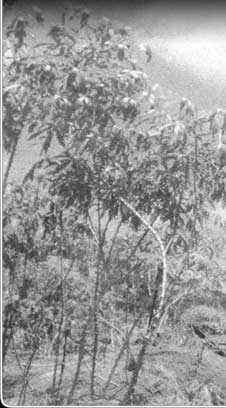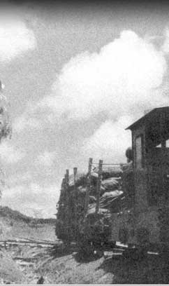 This photo from 1938 shows railroad cars in Madolenihmw loaded with tapioca ready for shipment to the plant. Four years earlier, large stretches of land were cleared in Sapwalapw, in the eastern part of Pohnpei, for a tapioca plantation.