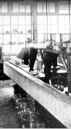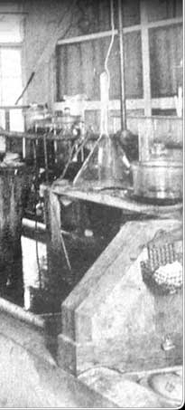 Agricultural research throughout this period was done at the Tropical Research Institute on Pohnpei. Shown here is the lab of this world-famous experimental center. The tall cement building survives today and is a landmark in Kolonia, Pohnpei.