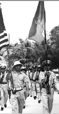 For years during the early trusteeship, UN Day was as close to a national holiday as Micronesia had. It was celebrated with gusto everywhere in the Trust Territory. In this 1955 celebration on Saipan, the local constabulary led the UN Day parade