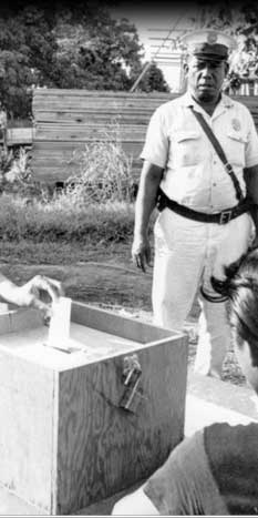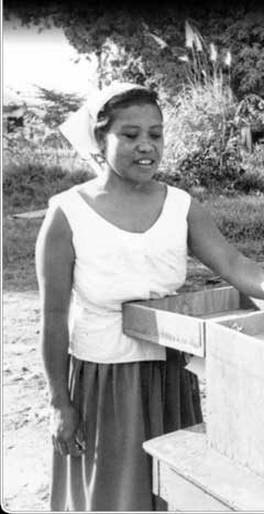 Then, in 1965, the Congress of Micronesia was formed. Islanders were given an official role in the territorial government at last. This Palauan woman submits her vote for candidates to the congress.