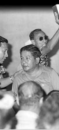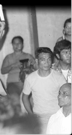 Bitterness over the political status issue was growing in the Northern Marianas. At this protest staged by leaders in 1971, a man holds a copy of the TT Code that he is about to burn.
