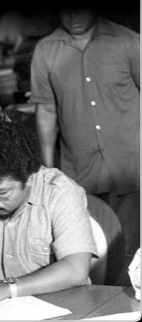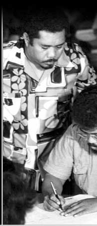 Here a Palauan delegate signs the constitution produced by the end of the summer. The new nation would be known as Federated States of Micronesia. But it was not yet clear what islands would be in the nation and which would be out.