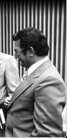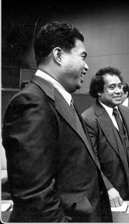 This appearance before the UN in 1978 was one of the last times leaders from the islands would appear together to represent Micronesia. Mitaro Dannis, Lazarus Salii and Juan Sablan chat with High Commissioner Adrien Winkel before the session.