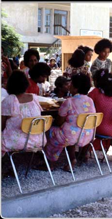 Marshallese people, voting here in the plebiscite, approved their constitution. The Marshalls was indeed "freed from its bondage," as their new constitution took effect.