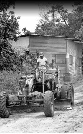 It was not long before road paving followed. Here a grader levels a stretch of road in Koror.