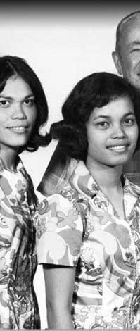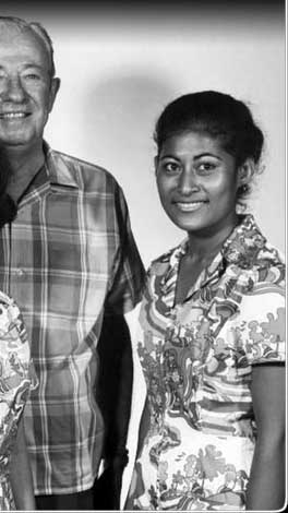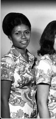 Air Micronesia also featured home-grown flight attendants. Pictured here with a Continental official are four of the first stewardesses: Irene Andres, Maria Camacho, Claudine Heine and Ida Amaraich.