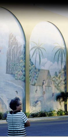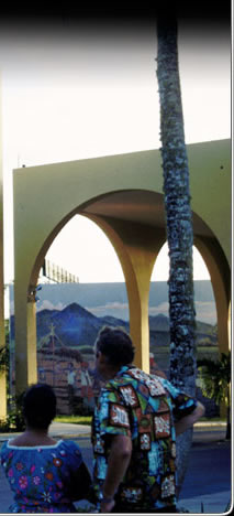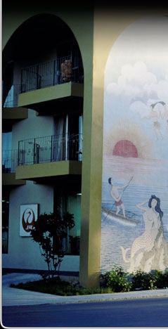 This hotel appeared close to Ipao Beach on Guam in the late 1960s. The Fujita Hotel was easily recognizable by the flashy mural on its exterior, but it would have been hard to miss anyway. At the time it was built there were still no other hotels on Tumon Bay.
