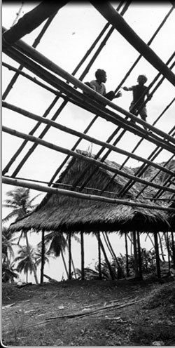 Not all the local hotels were built of concrete. Bob and Patty Arthur, new arrivals in Pohnpei, envisioned a hotel with island ambience. Their Village Hotel is shown in the early stages of construction in the early 1970s.