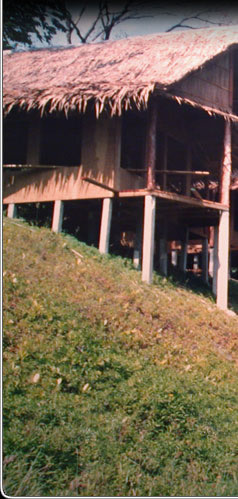 Pathways Hotel in Yap, another thatched roof style hotel, was built shortly after the Village. Pathways, shown here in 1977, brought an island flavor to tourism in Yap.