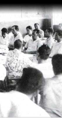 In this photo we see the Truk (Chuuk) Legislature in session in 1957. Most legislatures met only once or twice a year, and their power was limited. Control of the money�and many other things�remained with the High Commissioner's office. Even if they enjoyed little real power, Micronesians at least had some forum for expressing themselves publicly.