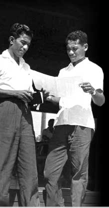Attending an anthropological conference, held in 1957, were the three young men shown here: Gustav Weilbacher from Pohnpei, Tion Bikajle from the Marshalls, and Fran Defngin of Yap.