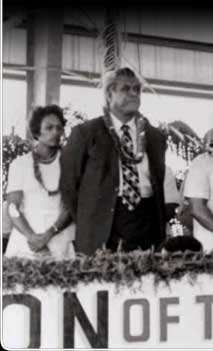 Meanwhile, in the newly formed FSM, people chose their own state governors. John Mangefel, in Yapese dress at the right of the podium, was inaugurated the first governor of Yap in early 1979. Sam Falanruw, to the left of the podium, was the master of ceremonies at the event.
