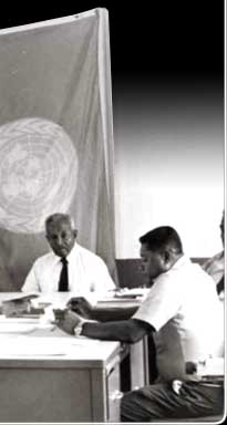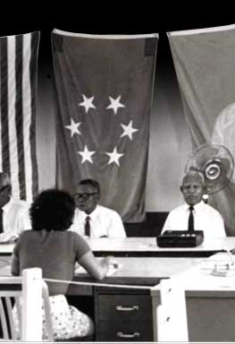 Micronesia had come a long way since the chartering of the early district legislatures. The legislatures, like Palau's shown here, offered people some political say in their affairs, but the flags in the background testified to where real authority lay. Nearly thirty years passed before islanders could elect their own chief executive.