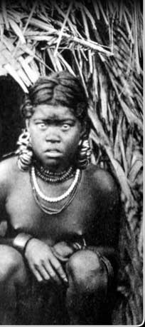 These two girls from Pulap are just emerging from the menstrual house. In many parts of Micronesia women were expected to stay in the menstrual house during their monthly period. This spared them the embarrassment of showing signs of their condition in front of their brothers.