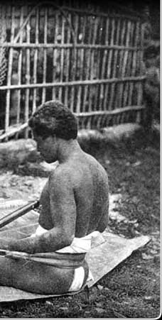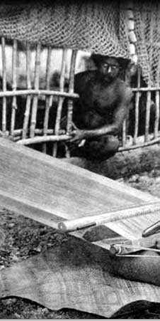 The loom was an important part of Micronesian life in the past, although it wasn't found in too many other parts of the Pacific. Here a man on Kapingamarangi is weaving, but in most other places women had exclusive use of the loom.