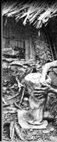 In some of Yapese villages women also made pottery, as this woman is doing here in Gitam Village. Like taro cultivation, this tradition continues up to the present.
