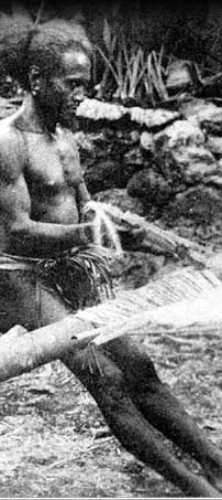 This Yapese man from Tabinfiy appears out of place at the loom, but he is weaving mats that can be exchanged as "money." Everyone has heard of stone money and shell money, but what about mats? In Yap, as in Polynesia, mats were also used as valuables.