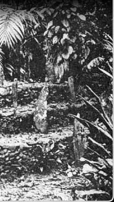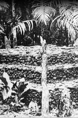 Bugulrow, the former chief of Gachapar and the third leg of the political tripod, died not long before 1900. This is his grave, tiered and lined with pebbles.