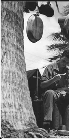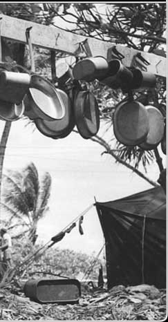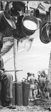 On some of the other islands in the lagoon, the fighting was over almost as soon as it began. This US soldier on Enylabegan enjoys his first hot meal the same day he came ashore.