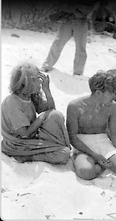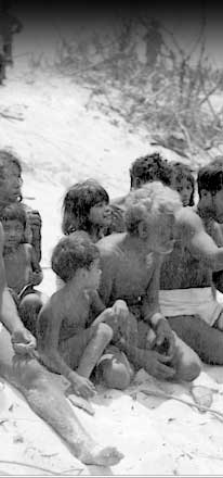 This Marshallese family was one of the several who burrowed underground as best they could to survive the bombardment and fighting. Soon they would be given clothing and food and be brought to another island for the duration of the war.