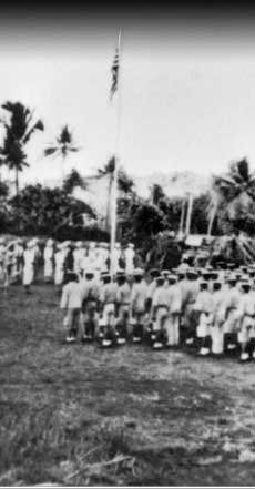 Pohnpei, too, had its ceremony celebrating the official surrender of Japanese troops on the island. On September 11, 1945, the American flag was hoisted in front of a public gathering. It would fly over the islands and the others in Micronesia for the next 30 years.