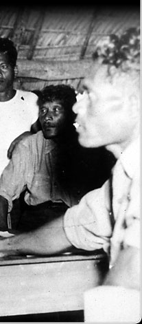 US Navy officials, headed by Commander Ben Wyatt, met with leaders on Bikini in February 1946 to make known their plan to conduct nuclear testing on the island. At a public meeting, Wyatt asked if the people would sacrifice their atoll "for the good of mankind and to end all wars."