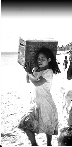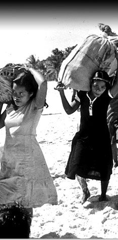 These women are carrying their belongings to the ship as the Bikini people prepare to evacuate their island.