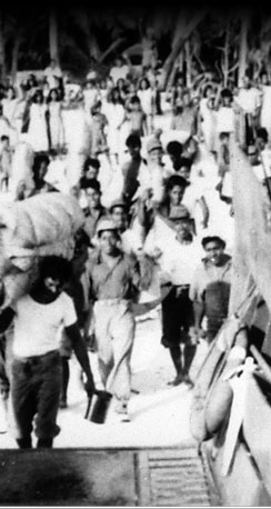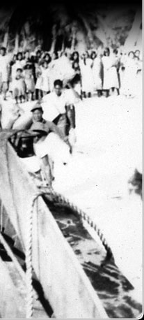 The people of Bikini, all 167 of them, stream aboard the ship that was to carry them to their Promised Land.