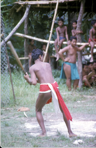 The game even made it to the outer islands of Yap. Here a Ulithi boy stands ready to swing at a pitch. The date was 1964, just about the time Outer Islands High School was being built there.