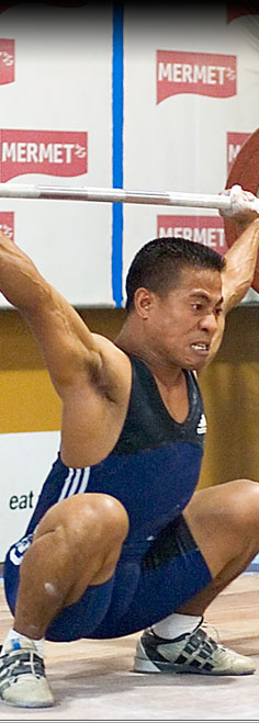Manuel Minginfel from Yap is doing a snatch in the Pacific Games in Fiji. Manuel has developed into a world class weightlifter. He also represents the islanders who have taken up new competitive sports in recent years.