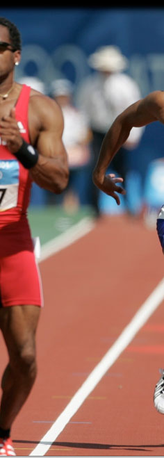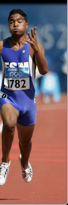 Another competitor at the Athens Olympics was John Howard from Chuuk. Here he is shown with a rival from Trinidad in a preliminary heat.