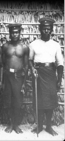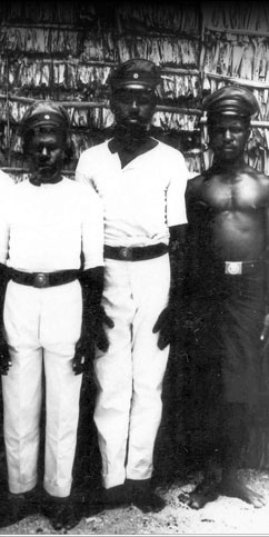 Marshallese, too, were recruited by the Japanese to serve as policemen. These young men in this 1915 photo are among the first local policemen in the Marshalls.