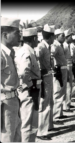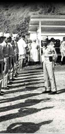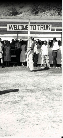 Chuukese police line up at the airport to welcome a dignitary in 1957. Island police were always expected to turn out in parade dress on such occasions.