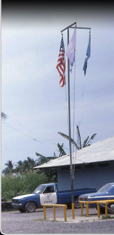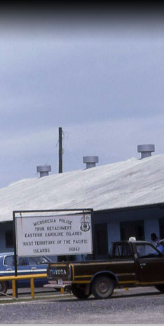 This is the old Chuuk police station, as it appeared in the 1970s. This building, which also contained the prison and the fire station, burned down in the early 1990s.