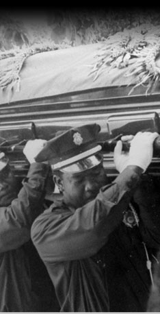 Apart from their other duties, police have come to play an important role in state funerals. Here Marshallese police carry the body of Amata Kabua, paramount chief and former president of the Marshalls, to his burial place in 1997.