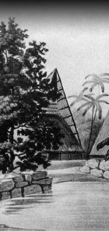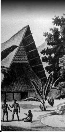 Meanwhile, Rev. Snow and his wife were brought to Kosrae to live in a village like this one sketched by Duperrey 30 years earlier. Like Sturges, Snow found a protector in a chief �the