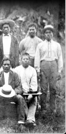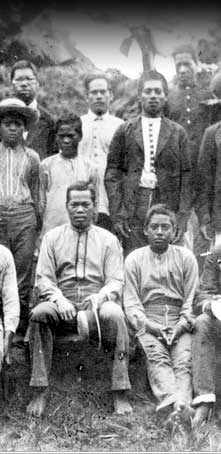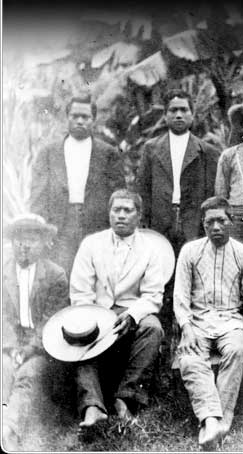 To prepare local pastors and teachers, training schools were opened on Pohnpei and Kosrae. This group of Marshallese students, attending the school on Kosrae in 1887, returned to become pastors on their islands.