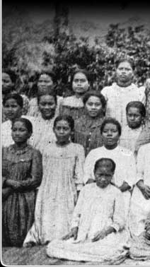 Here are the girls who would become the wives of the local pastors and teachers. These girls attended the Kosrae Girls School during the 1880s, when higher education was first extended to females.
