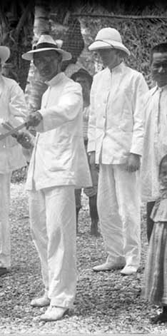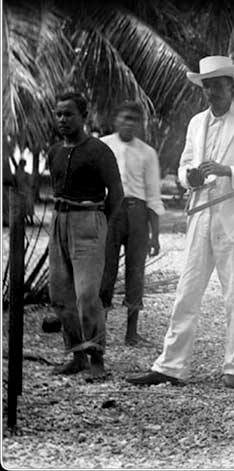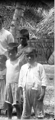 Rev. Carl Heine, an Australian who spent his life in the Marshalls, is shown here with two other pastors (Rev. Watman and Rev Maas) on Jaluit. Heine served the Marshallese church until his execution by the Japanese in 1944.